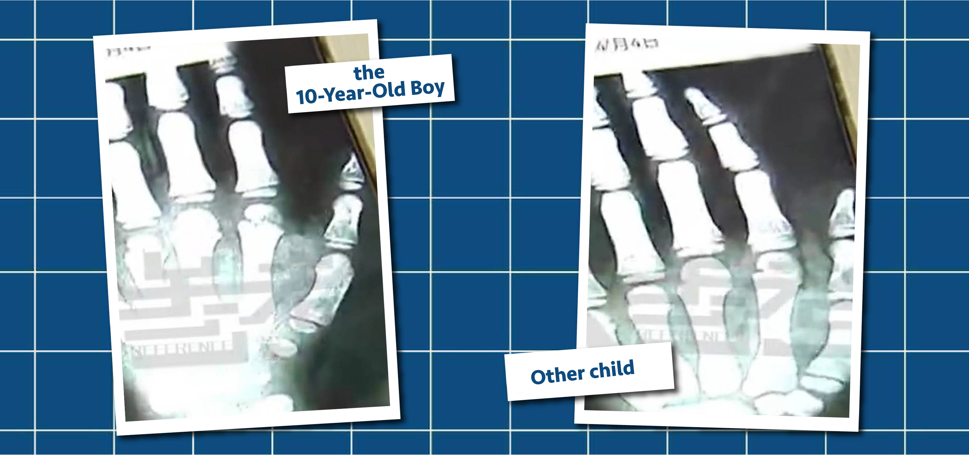 At Zhengzhou University First Affiliated Hospital in mainland China, a 10-year-old boy was brought in for examination. Upon first sight, doctors thought he was only about 5 or 6 years old due to his height of approximately 110 cm. Further investigations revealed that this child's bone development was lagging a full 4 years behind that of typical children. Dr. Huo Yufeng, a pediatric intensivist at the hospital, presented two images showing that the boy’s bone density was significantly lower than that of other 10-year-olds, indicating a notable looseness between the bones.