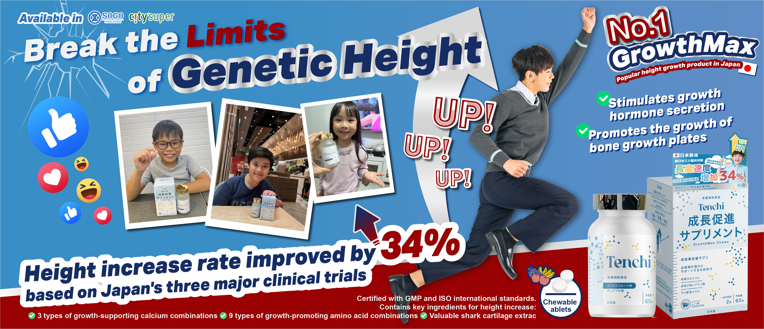 3 major clinical trials in Japan have confirmed that the product effectively accelerates height growth in individuals aged 5 to 22.