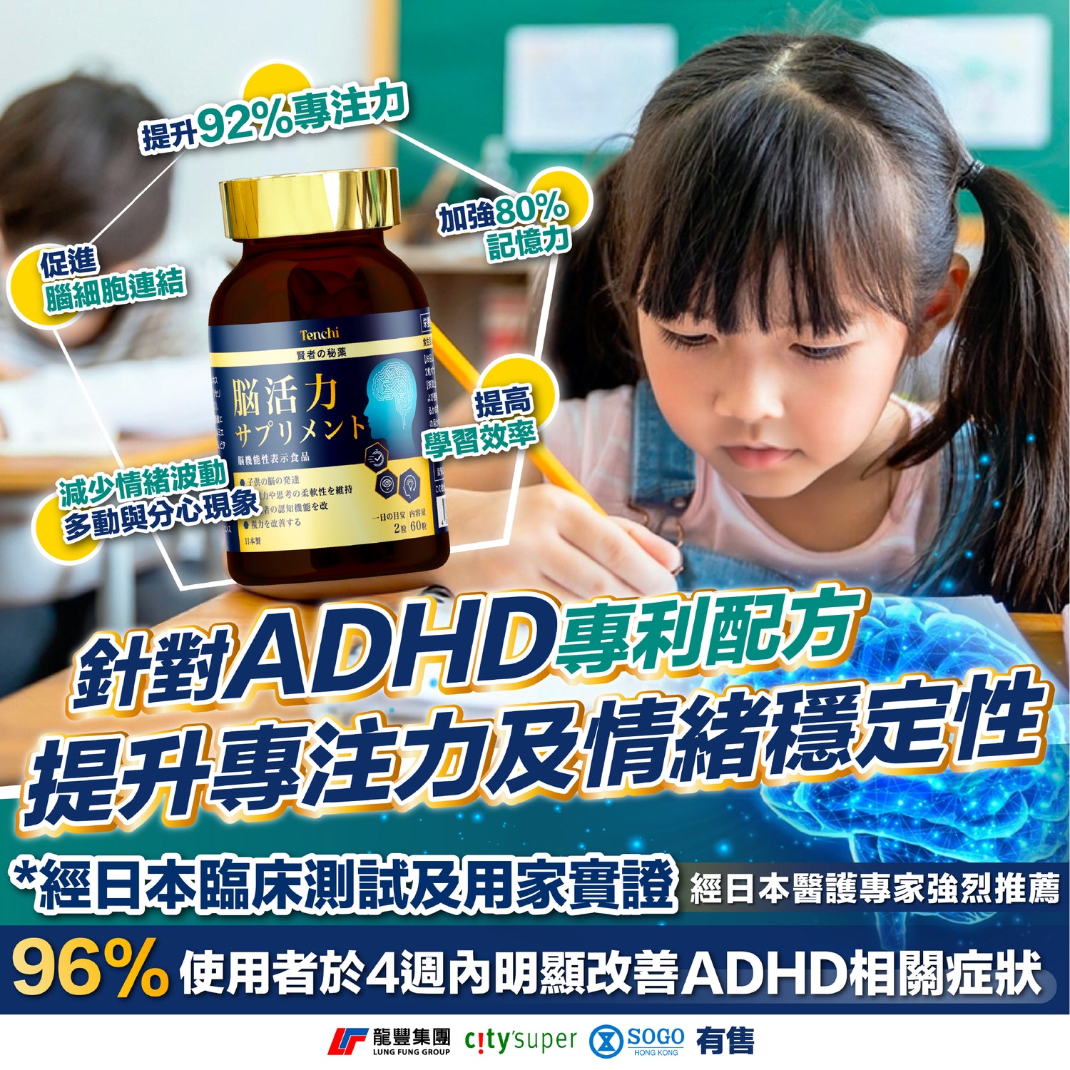 研究表明,Tenchi聰明豆的成分(如磷脂酰絲氨酸和B群維生素)能有效提升ADHD人士的認知功能與情緒穩定性。其天然配方不含激素或西藥成分,無副作用,適合長期使用。