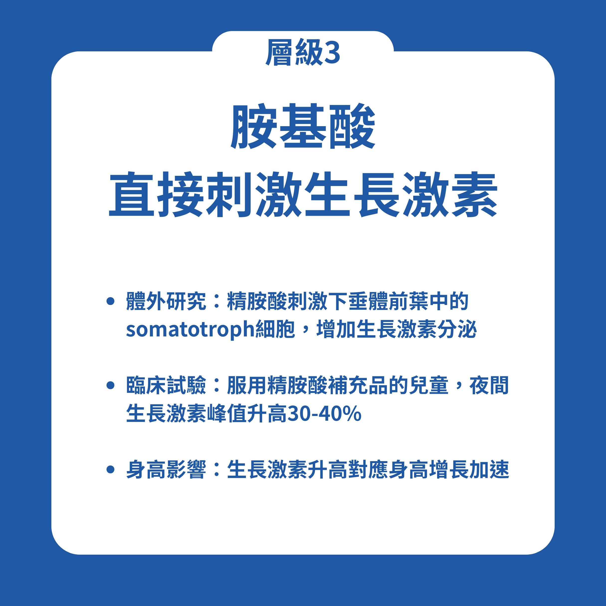 - 臨床試驗:服用精胺酸補充品的兒童,夜間生長激素峰值升高30-40%