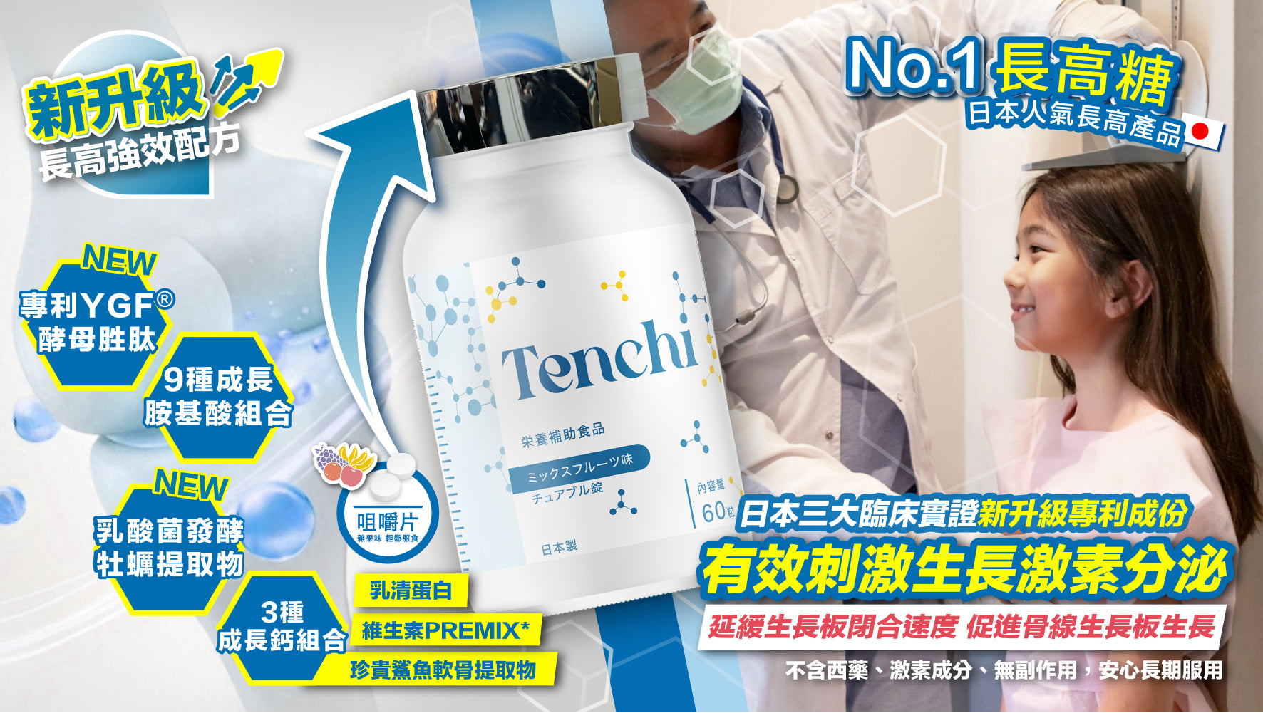 為幫助青少年在關鍵發育期實現理想身高,我們推出Tenchi日本長高糖(無糖配方),一款由日本研發的成長系列營養補充品,專為5-22歲的青少年設計。經過日本三大臨床試驗,92%以上的測試者在連續服用三個月後,身高增長速度平均提升34%。